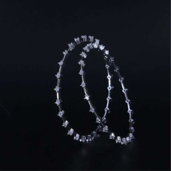 The Silver Bangles Set Features A Sleek And Modern Design With A Delicate Touch. The Slim, Slightly Curved Bands Are Adorned With A Single Row Of Sparkling Square-Shaped Stones, Creating A Look That Is Both Understated And Elegant.