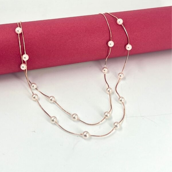Be the first to review “Rosegold Double Line Cascade Of Pearls 925 Silver Necklace” Cancel reply